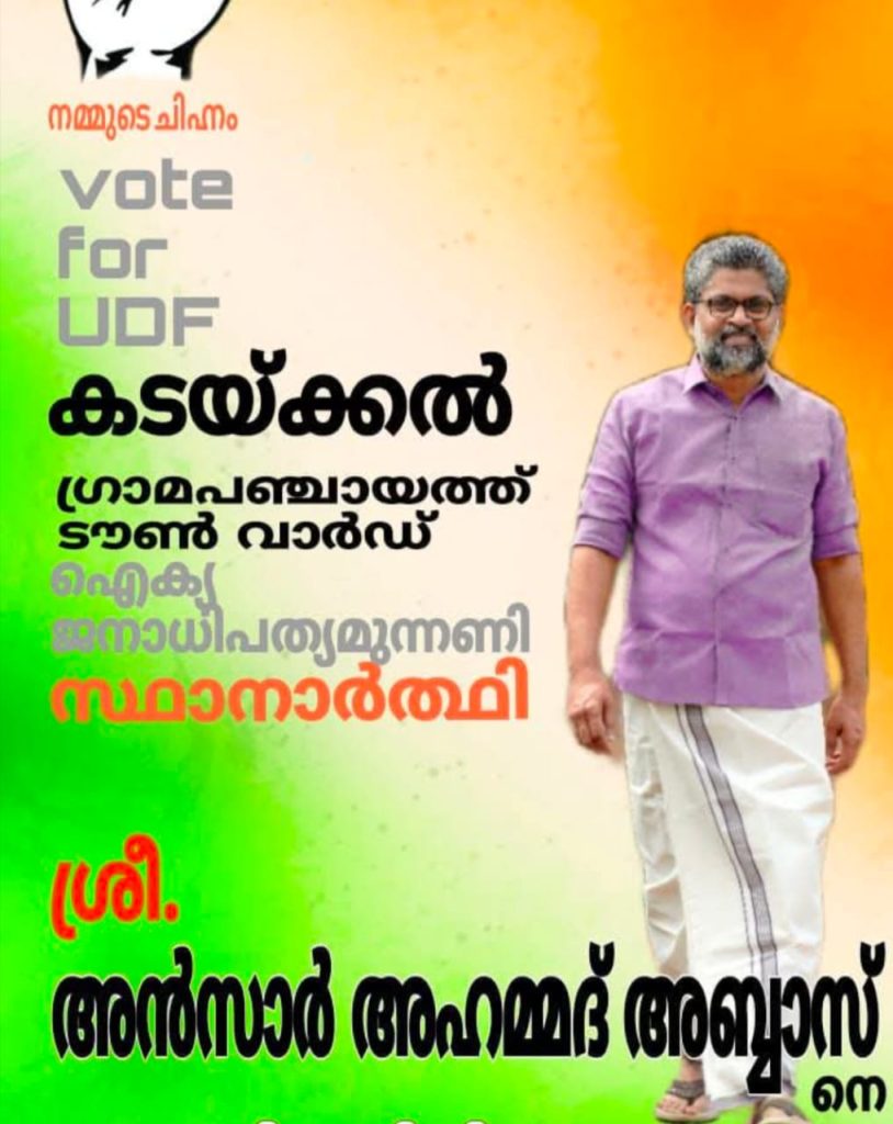 ആത്മാർത്ഥതമായ സമീപനം കൊണ്ട് ഹൃദയം കീഴടക്കിയ അൻസാർ അഹമദ് കടക്കൽ ടൗൺ വാർഡിൽ നിന്നും ജനവിധി തേടുന്നു.